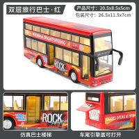 x双层巴士模型公交车玩具大号开门城市仿真公共汽车男孩玩具车-公巴士双层露天颜色随机+两个小人+36对车牌