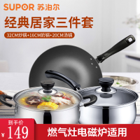 苏泊尔(SUPOR)套装锅TP1615K铸铁炒锅304不锈钢奶锅汤锅居家三件套装锅具燃气电磁适用