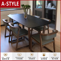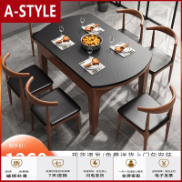 苏宁放心购实木餐桌家用现代简约伸缩中式大理石餐桌椅火烧石饭桌组合小户型A-STYLE