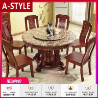 苏宁放心购大理石餐桌椅组合现代简约中式大理石实木餐桌带转盘家用圆形餐桌A-STYLE