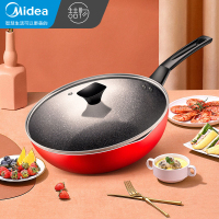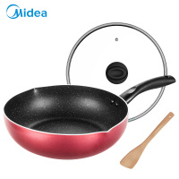 美的(Midea) 喆物麦饭石色不粘锅炒锅电磁炉煤气灶适用炒菜专用家用煎炒锅 活力红[28CM口径]