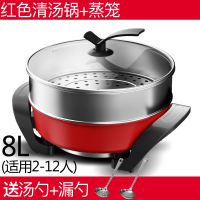 奥克斯鸳鸯电火火锅锅家用多功能宿舍电炒菜炒锅电热煮烧烤一体锅 8L加厚款红色清汤锅+蒸笼+大礼包