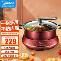 美的(Midea)多用途锅分体式家用电煮锅宿舍电热锅智能电炒锅大容量不粘可煎烤4.5L支持温度调节MC-DHY28