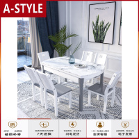 苏宁放心购北欧实木餐桌椅组合现代简约小户型玻钢石餐桌伸缩家用折叠圆桌A-STYLE家具