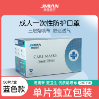 民用口罩50只独立装蓝色盒装三层熔喷布防止飞沫一次性普通口罩