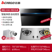 Chigo/志高抽油烟机燃气灶套餐家用厨房烟机灶具套装自动清洗特价 [H080+H018]智能体感+烟道增压+圆形4.0