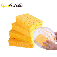苏宁定制款天然木浆棉洗碗布4片 厨房刷锅洗碗清洁魔力擦奇妙洁净百洁布抹布钢丝球海绵擦不易沾油神器 科林清