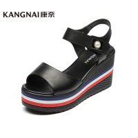 康奈女鞋 夏季松糕底凉鞋时尚坡跟厚底凉鞋露趾魔术贴简约百搭凉鞋女鞋15284023