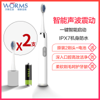 worms电动牙刷成人全自动声波防水软毛男女士学生党情侣牙刷 牛奶白一档位电池款配(2刷头+5号干电池)
