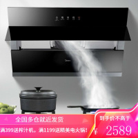 美的抽油烟机家用侧吸大吸力厨房电器吸烟机自动清洗 黑色