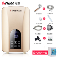 志高即热式电热水器家用小型速热淋浴洗澡机租房卫生间壁挂免储水 香槟色(高配款+空气开关)