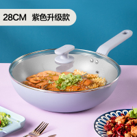 紫灰款-28cm 炊大皇莫兰迪色麦饭石不粘锅炒锅炒菜锅平底锅家用锅具磁炉通用
