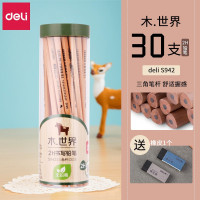 得力(deli)S942 原木铅笔学生书写绘画素描铅笔桶装三角六角铅笔 30支/桶 三角2H 2筒装