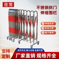 夜莺 不锈钢伸缩围栏拱门式安全移动护栏施工防护栏车间隔离栏幼儿园学校门口折叠栅栏 1.1米高*可伸8米