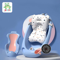 DuDi/青蛙嘟迪 婴童浴盆宝宝洗澡盆婴幼儿感温浴盆可坐可躺澡盆新生儿大号儿童沐浴盆配悬浮垫套装 蓝色
