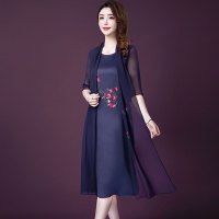 魅言魅语(MeiYanMeiYu)雪纺连衣裙2021夏季新款韩版大码女装五分袖中长款刺绣绣花假两件连衣裙妈妈装