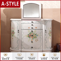 苏宁放心购乡村家具复古美式梳妆台卧室小户型化妆桌翻盖彩绘实木梳妆台米白色客厅卧室欧式田园A-STYLE家具