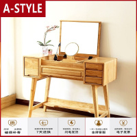 苏宁放心购梳妆台实木化妆台简约现代翻盖梳妆台卧室大容量收纳化妆桌榉木色客厅卧室欧式田园A-STYLE家具