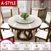 苏宁放心购大理石餐桌圆桌带转盘实木现代简约家用圆形面吃饭桌子餐桌椅组合A-STYLE