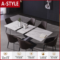 苏宁放心购意式轻奢岩板伸缩餐桌椅组合北欧简约现代大理石长方形桌子A-STYLE