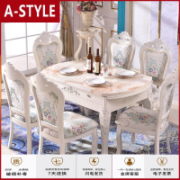 苏宁放心购欧式餐桌椅组合大理石多功能伸缩折叠家用实木花带转盘圆桌饭桌A-STYLE家具
