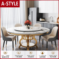 苏宁放心购后现代轻奢北欧大理石餐桌圆桌带转盘不锈钢圆形饭桌家用简约10人A-STYLE