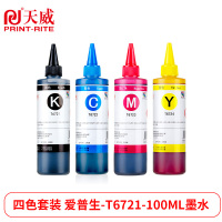 天威 EPSON-T6721-100ML-黑青黄红四色套装墨水 专业装 适用爱普生L220/L301/L303/L385