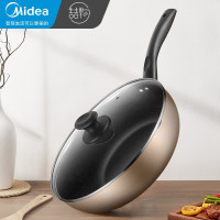 美的喆物不粘锅麦饭石色炒锅电磁炉燃气煤气灶通用家用无油烟炒菜锅专用 金色[燃磁通用有锅盖]