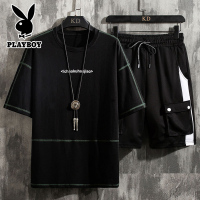 花花公子夏季短袖T恤男士套装潮流牌半袖一套搭配帅气两件套夏装