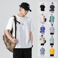 纯棉短袖t恤男士2022夏季薄款潮流休闲青少年纯白色体恤学生宽松半袖T恤衫HOUQIYE
