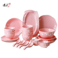 凌天 景德镇日式蝴蝶系列八人食套装小清新陶瓷餐具创意家用碗