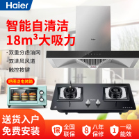 自清洁烟机+4.5kw防干烧灶具 天然气 Haier/海尔吸排抽油烟机燃气灶套餐厨房家用大吸力顶吸式