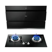 海尔全新吸抽油烟机家用厨房大吸力顶吸式小型油畑机姻机烟机 黑 天然气 燃气灶 19立方+5.0KW猛火