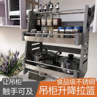 不锈钢橱柜升降机拉篮厨房吊柜下拉式篮置物架收纳得调味