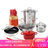 德国双立人安居乐业锅具套装不粘锅煎锅平底锅蒸锅炒菜锅奶锅汤锅辅食锅珐琅锅不锈钢锅具厨具套装 安居乐业16件套