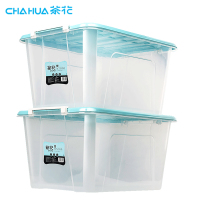 茶花58L收纳箱大号家用塑料有盖储物加厚特大号衣服透明收纳盒整理箱蓝色