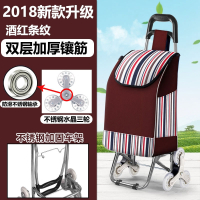 爬楼不锈钢买菜车小拉车可折叠拉杆车手拉车便捷家用手推车 不锈钢车身条纹酒红条纹[轴承·不锈钢水晶三轮]+底板