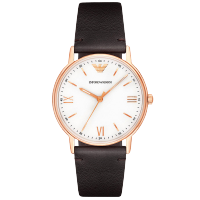 阿玛尼(EMPORIO ARMANI) 手表 腕表 欧美品牌 简约真皮表带休闲典藏商务男士表 石英表 男 AR11011