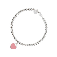 [直营]TIFFANY&CO.蒂芙尼925银欧美风格Return to Tiffany系列女士粉色珐琅心形吊坠手链送恋人