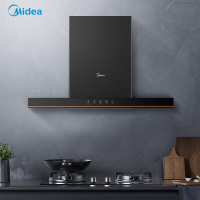 美的欧式顶吸大吸力油烟机厨房家用自动清洗抽烟机智能家电 黑色