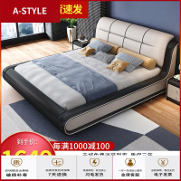 苏宁放心购床 现代简约真皮床双人主卧婚床北欧轻奢储物1.8米小户型软包大床A-STYLE家具