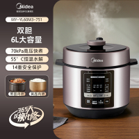 美的电压力锅家用6L多功能高端高压电饭锅一体智能大容量电高压锅 尊享版香槟金