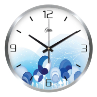 康巴丝(Compas)14寸钟表客厅卧室壁钟金属挂钟 扫描欧式创意石英钟挂表 14英寸(直径35.5厘米) 银色 抖音