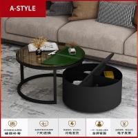 苏宁放心购北欧茶几现代简约客厅茶几可移动多功能茶几铁艺茶几玻璃圆形茶几A-STYLE