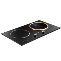 尚朋堂双头电陶炉 大功率家用台式嵌入式电磁炉电磁灶 双灶电磁炉一平一凹一电一陶 双头电陶炉
