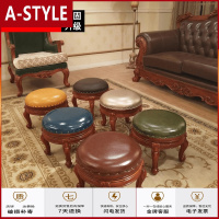 苏宁放心购美式圆凳实木换鞋凳客厅皮墩子沙发凳茶几板凳欧式小凳子矮凳家用A-STYLE家具