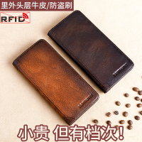 钱包男超薄长款头层牛皮真皮卡位多2021新款复古竖款防盗刷皮夹子