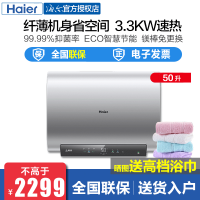 海尔扁桶电热水器家用超薄一级能效50升储水式3.3KW加热官方旗舰店新款BK1海尔EC5001HD-BK1银U1电热水器