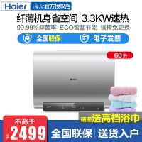 海尔扁桶电热水器家用超薄一级能效60升3.3KW储水式官方旗舰店新款BK1海尔EC6001HD-BK1银U1电热水器