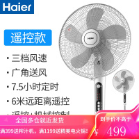 海尔电风扇落地扇家用大风力节能省电定时自然风立式摇头风扇 白色遥控